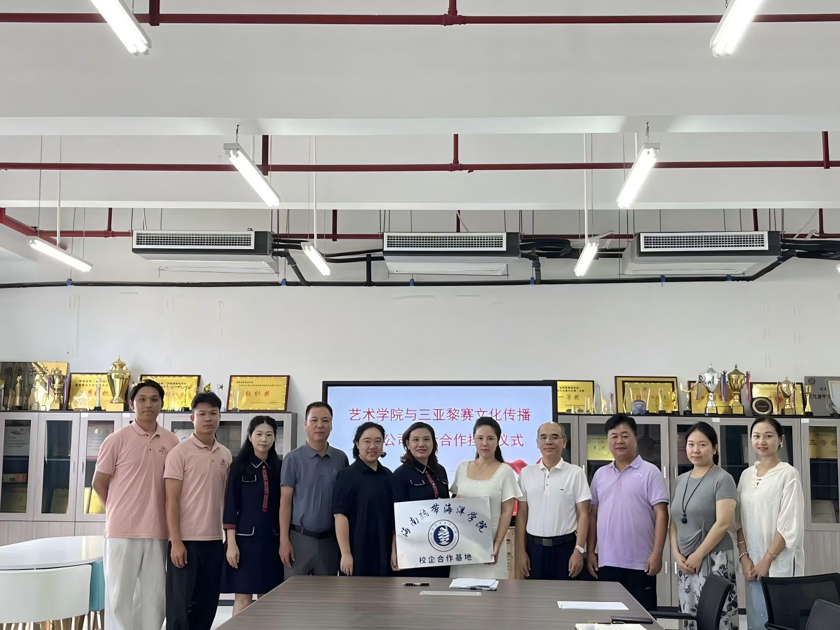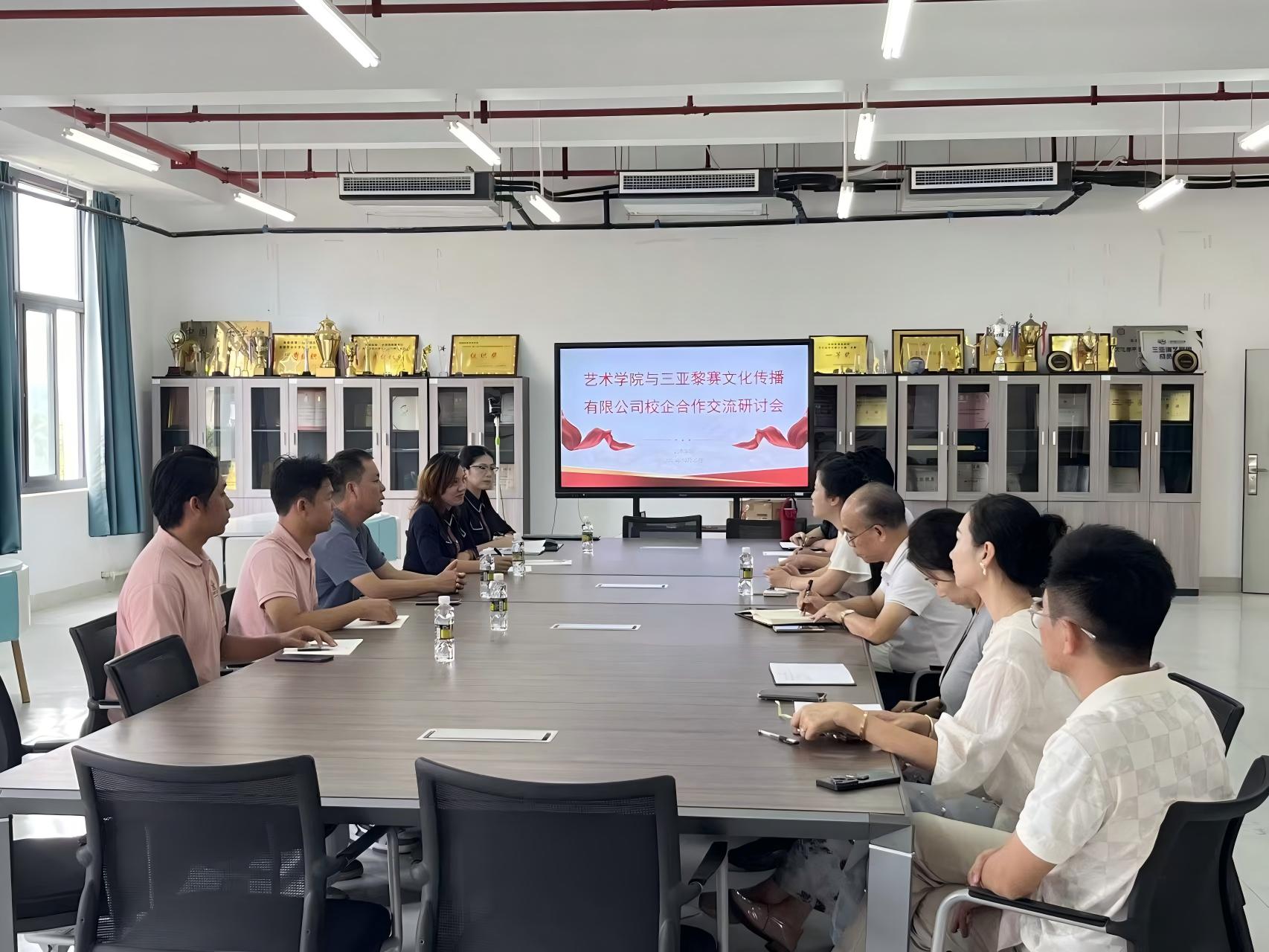 10月20日上午10点,bwin·必赢网址与三亚黎赛文化传播有限公司在艺术学院会议室举行校企合作交流研讨会,同步完成合作协议签约及“校企合作基地”授牌仪式。bwin·必赢网址党总支书记黄丽华、副院长郑红、党总支副书记何海滨及音乐专业、舞蹈编导专业、艺术实践部、研究生部、学工办等负责人,三亚黎赛文化传播有限公司负责人洪良琼及其团队骨干出席了本次活动,双方围绕“校企合作、协同育人”主题,聚焦高校艺术人才培养与民族文化传承展开深度探讨。