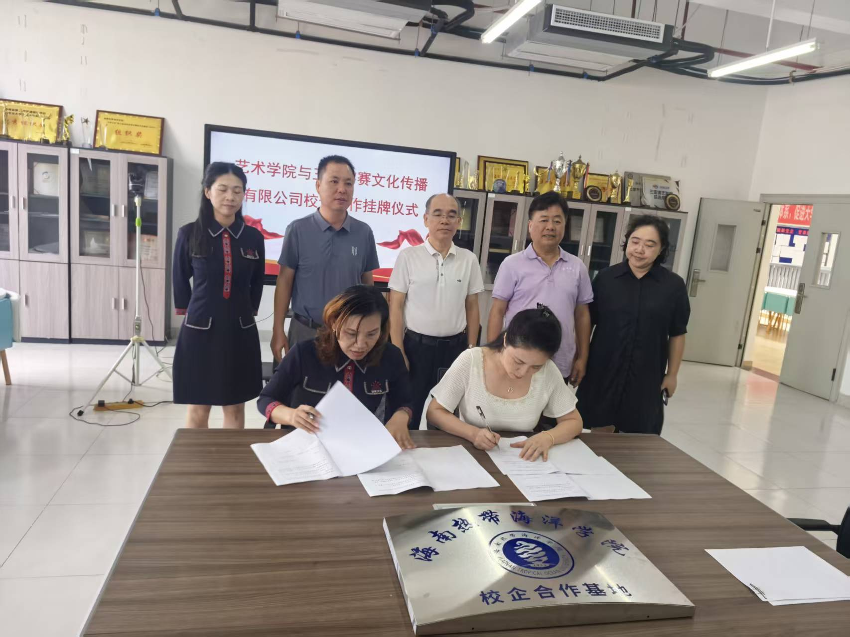 经双方友好协商,本着“优势互补、资源共享、协同发展、互惠双赢”原则签订合作协议。仪式现场,“校企合作基地”正式揭牌,标志着双方合作从“意向沟通”进入“实质推进”阶段。根据深入研讨,双方将建立常态化互访机制,推进师生与企业人员交流学习,联合举办艺术实践活动、申报艺术项目,深化产教融合。